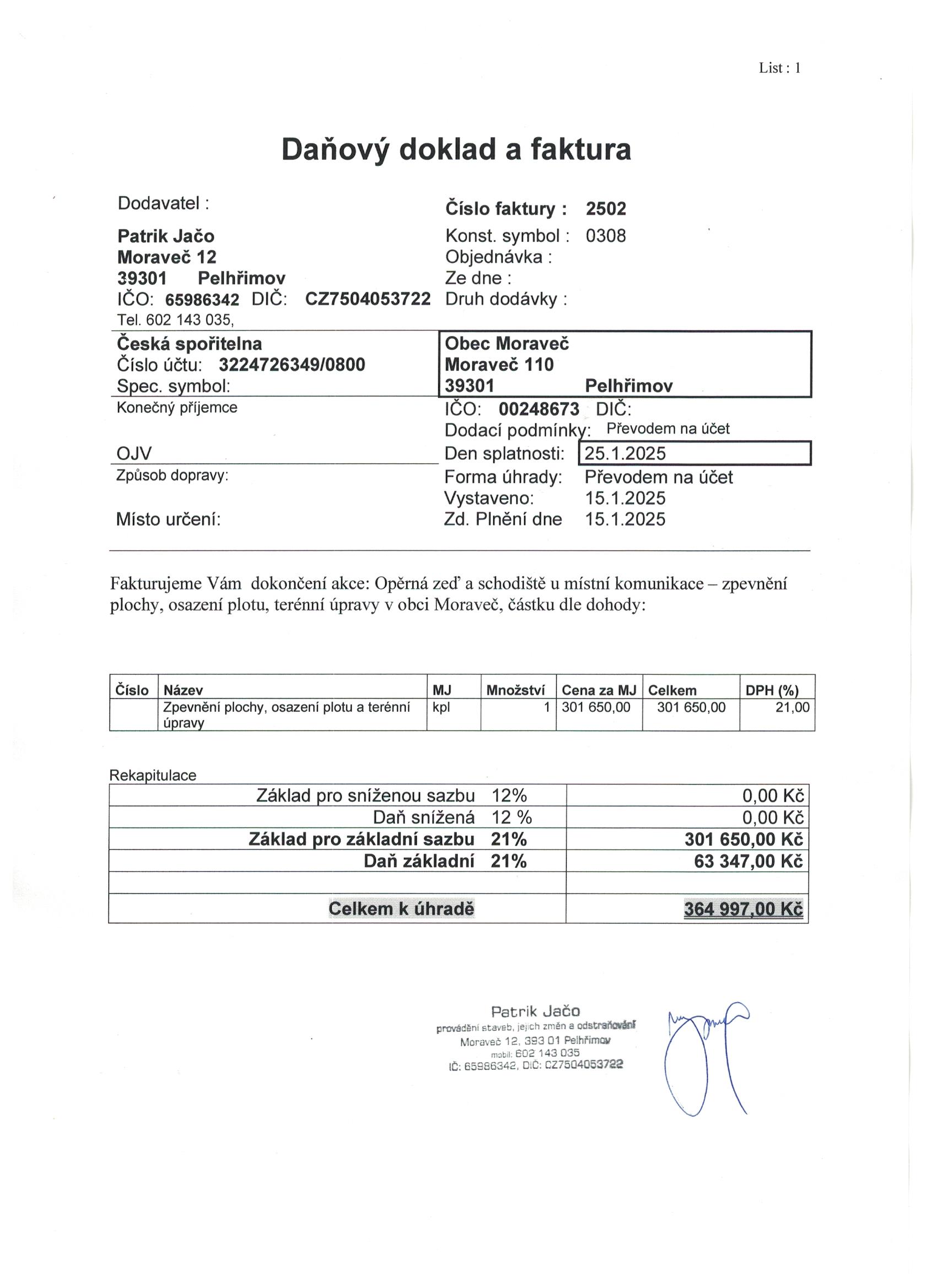 Veřejná zakázka: Opěrná zeď a schodiště u místní komunikace